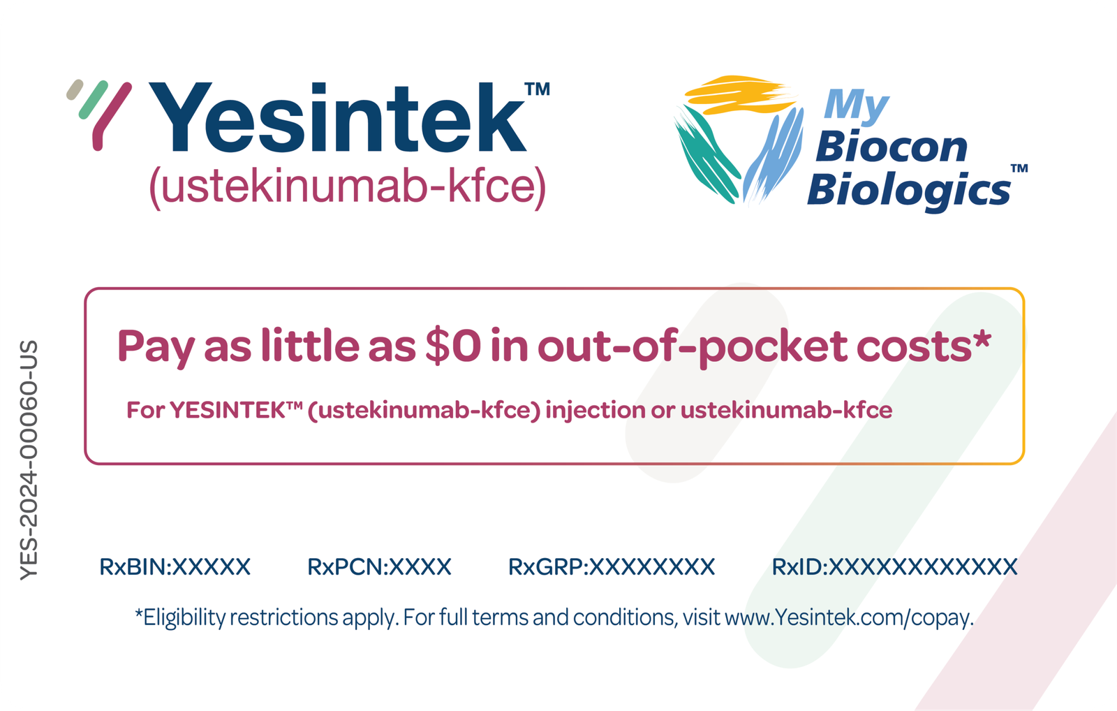 Eligibility restrictions apply. Not valid for uninsured patients or patients who are covered by a state- or federally funded healthcare program. For full terms and conditions, visit www.Yesintek.com/copay.